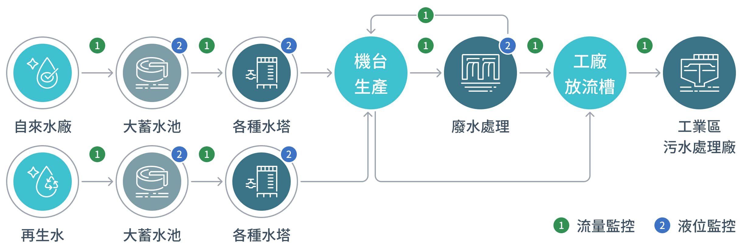 我們導入 水資源監控系統(WMS),持續提升製程節水效率,並訂下明確目標: